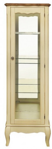Цвет: Бежевый,Глубина, см: 37,Высота, см: 139,Ширина, см: 45,Материал: Массив березы,Вес: 35 кг,Стиль: Прованс,Цвет столешницы: Орех,Дизайн: Франция,Назначение: Для посуды,Конструкция: Витрина,Количество дверей: 1,Ножки: с гнутыми ножками,Опора: На ножках,